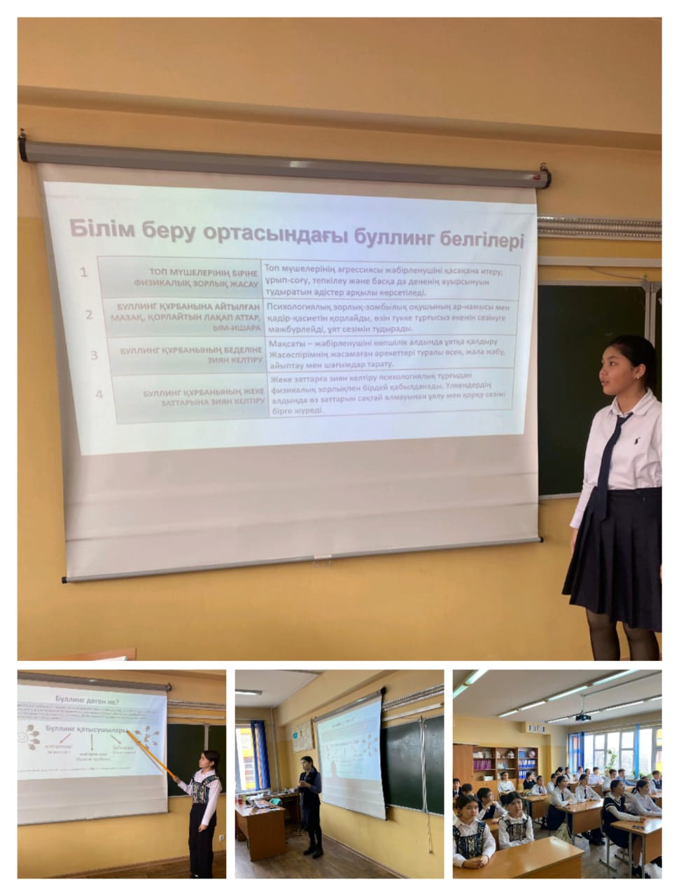 Булингтің алдын алу мақсатында тарих пәні мұғалімі Жұмабек Д. мен мектеп психологы Елібай Ж. ұйымдастыруымен дәріс өткізілді. » №109 жалпы білім беретін мектеп